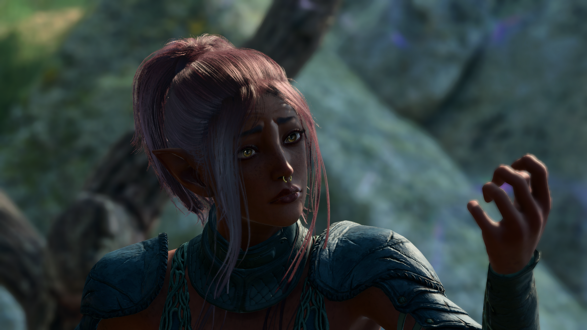 ended up starting a solo run of bg3 because i spent the week thinking about playing until i could get together with my friends lmao. i'm actually a lot happier w/ how my tav turned out, she is so pretty! doing an abjuration wizard build for her.