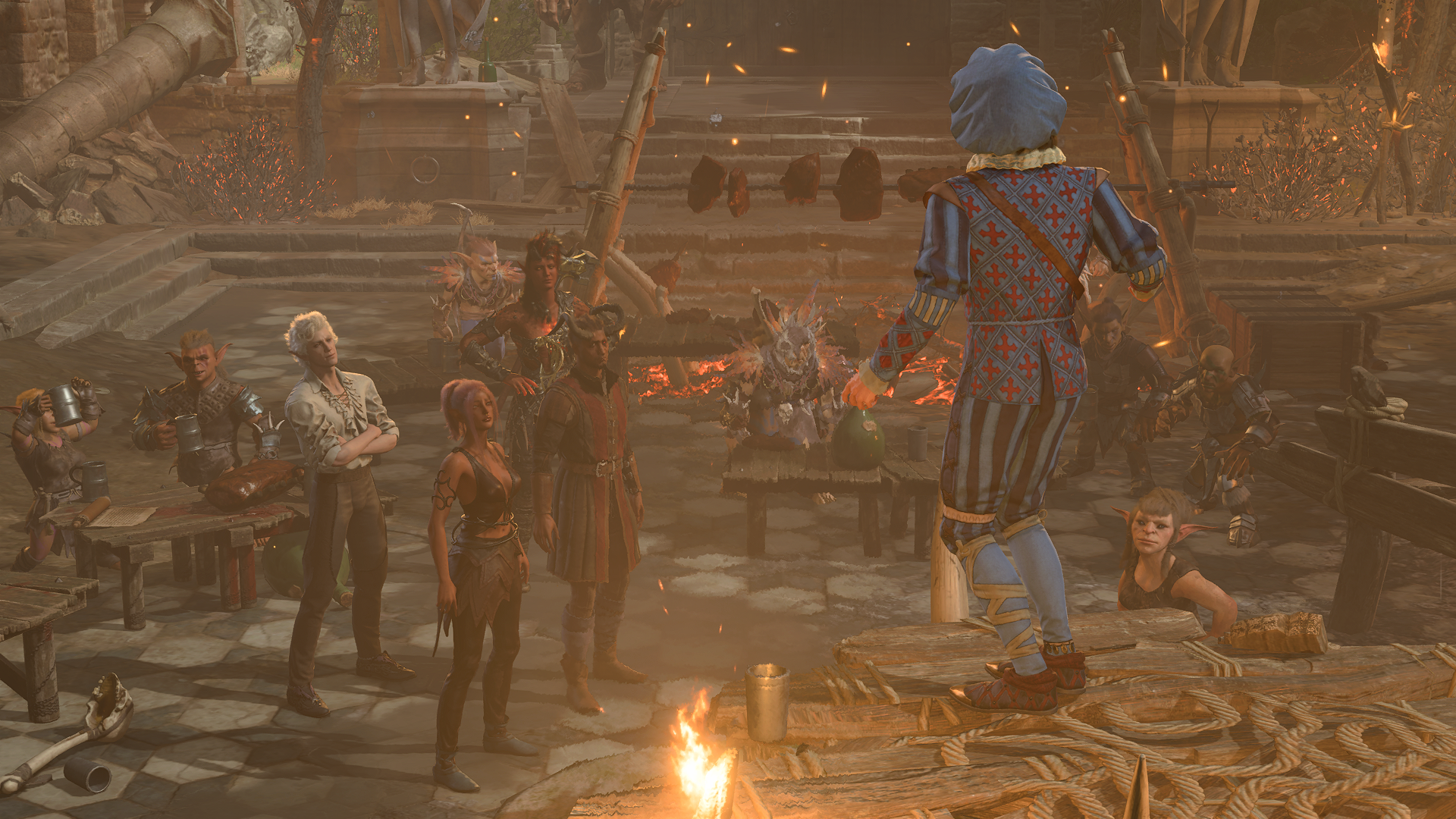 played bg3 with my friends for a little bit after work. got the party expansion mod and a mod to balance the difficulty with that. we split up the party members and i get wyll and karlach~